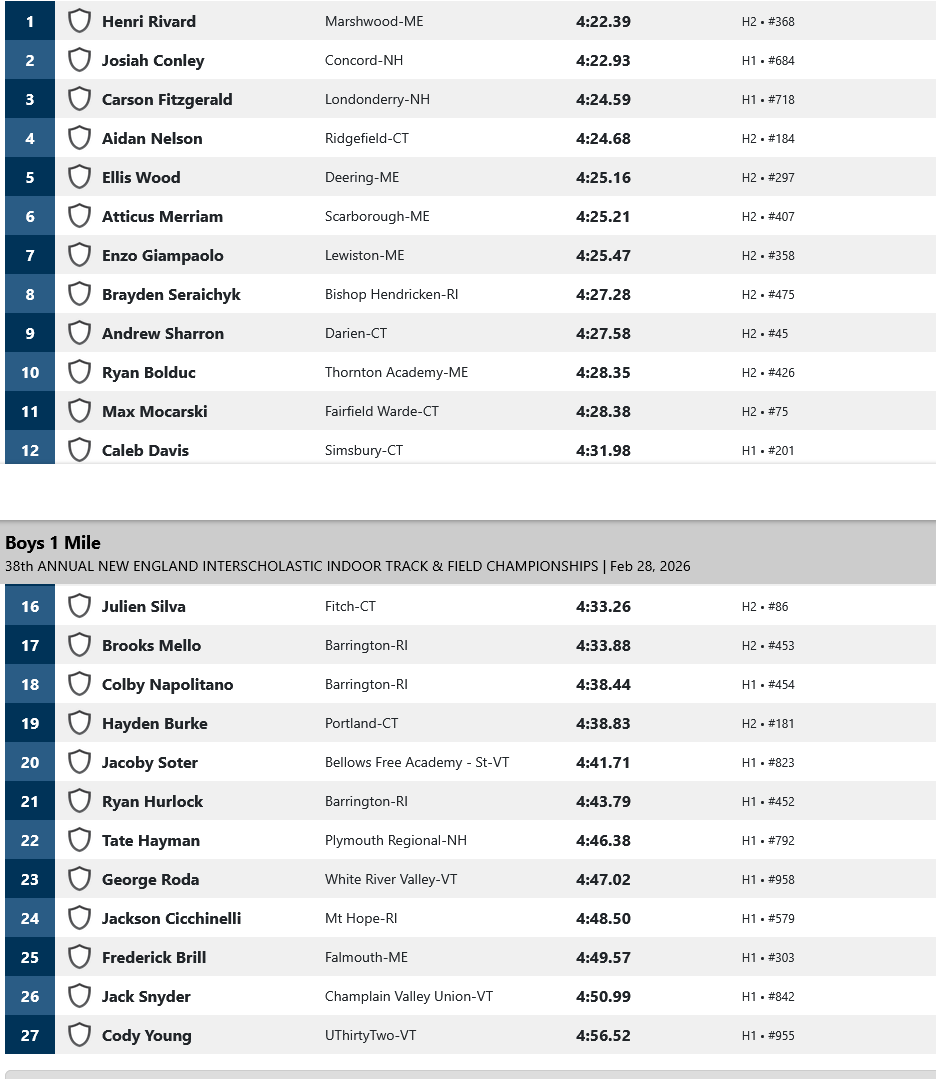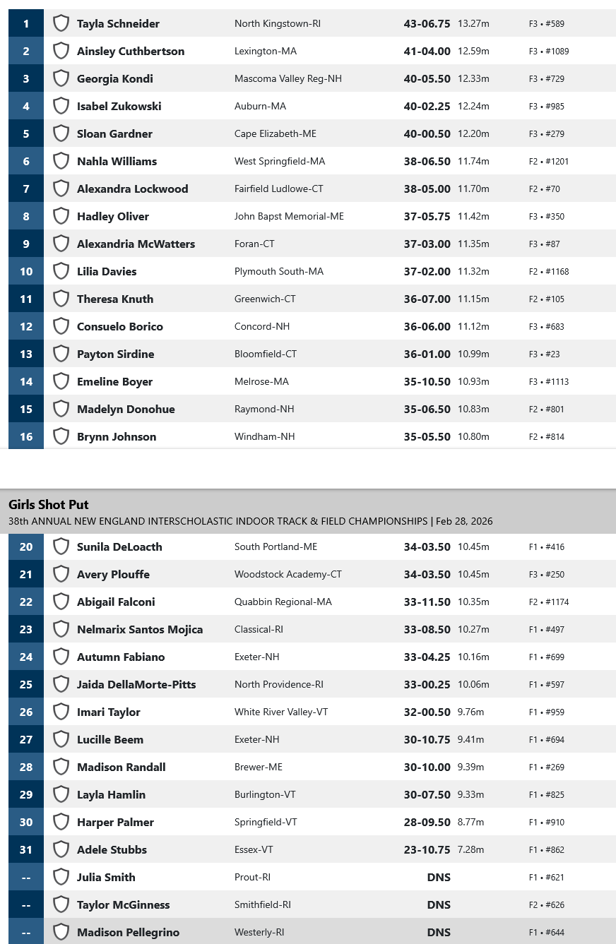 The 38th annual New England Interscholastic Indoor Track & Field Championships are scheduled to take place Saturday, February 28, 2026 at 1:00 PM. The meet is presented by the Council of New England Secondary School Principals’ Association and will take place at the Reggie Lewis Track and Athletic Center.