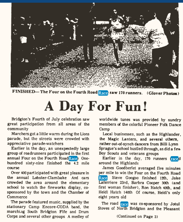 Maine Hall of Fame Project Road Race Results 1999-2015