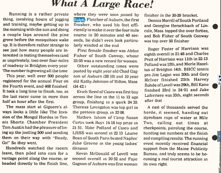 1980 Walter Hunt 5k then called Greater Bangor 5k the 1st year only