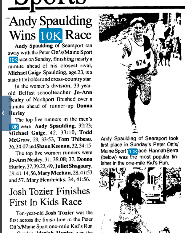 Maine Hall of Fame Project Road Race Results 1999-2015