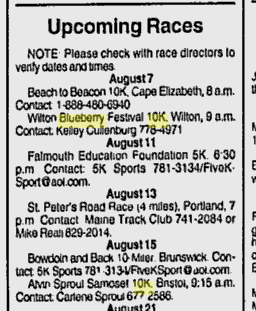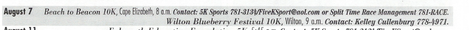 | Aug 7 | Beach To Beacon 10K (updated 8/7/99) | Cape Elizabeth |
