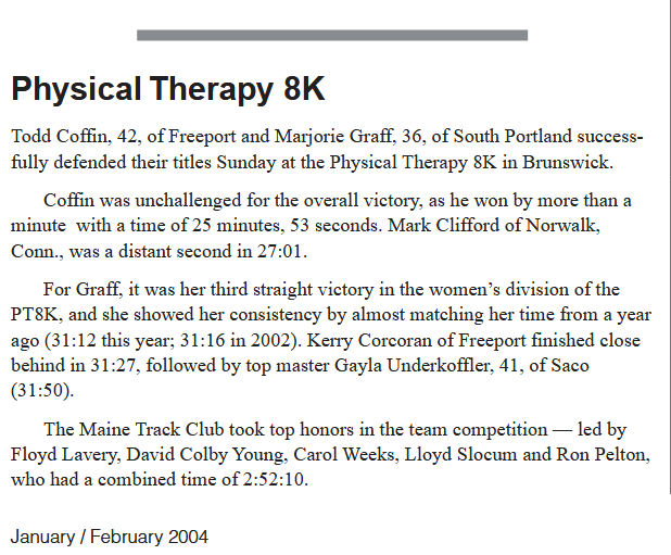 Maine 2003 Race Results
