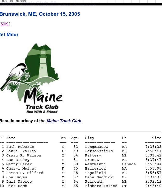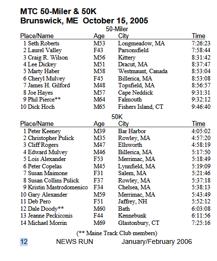 Maine 2005 Race Results