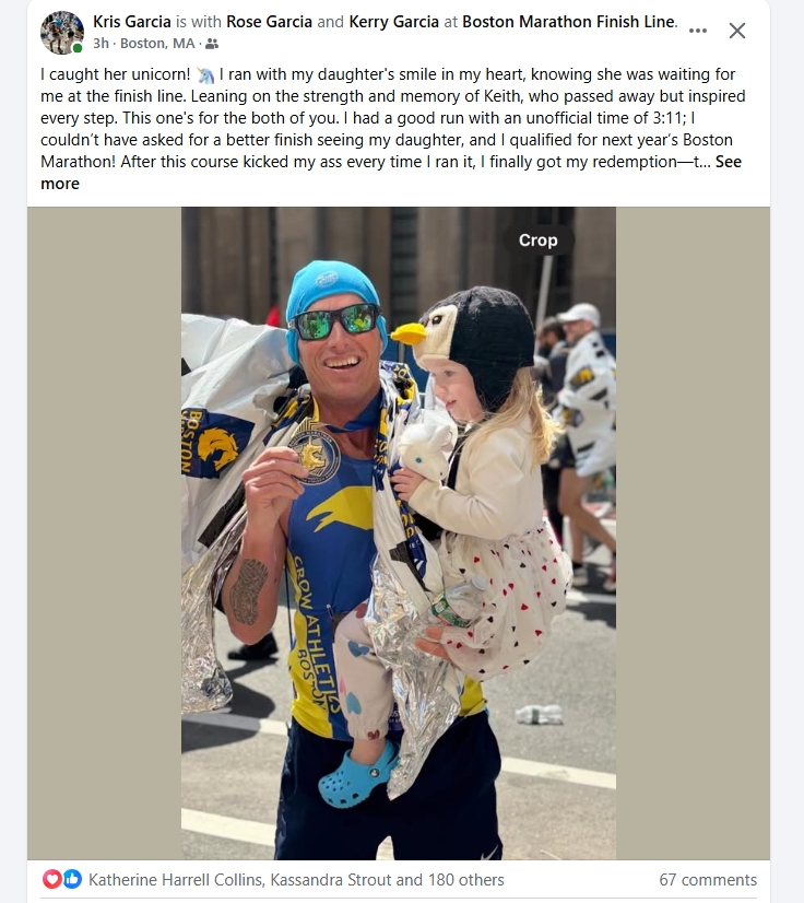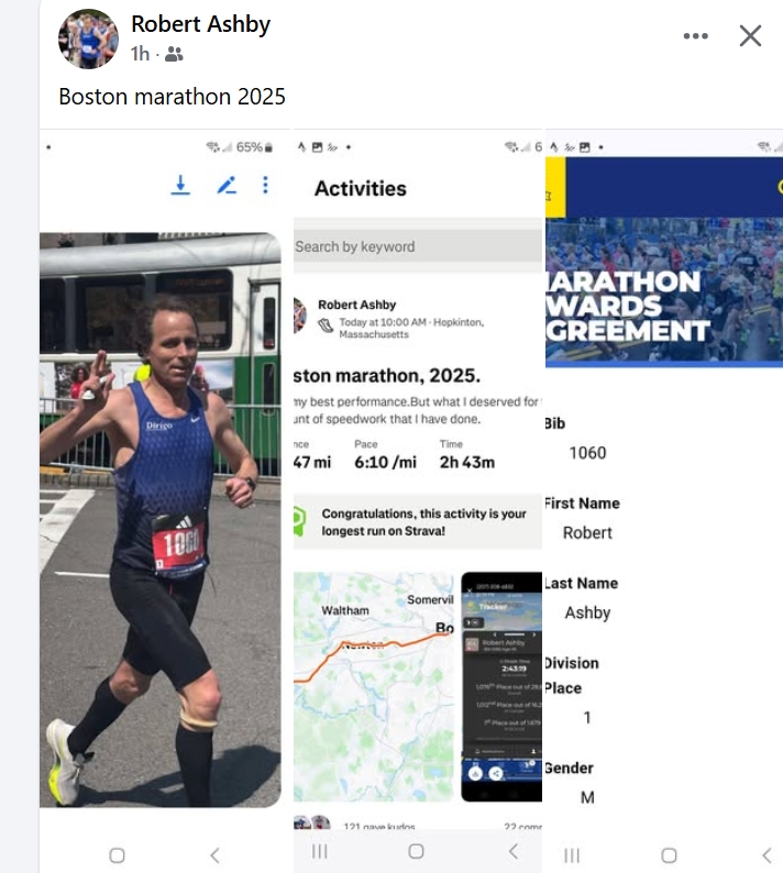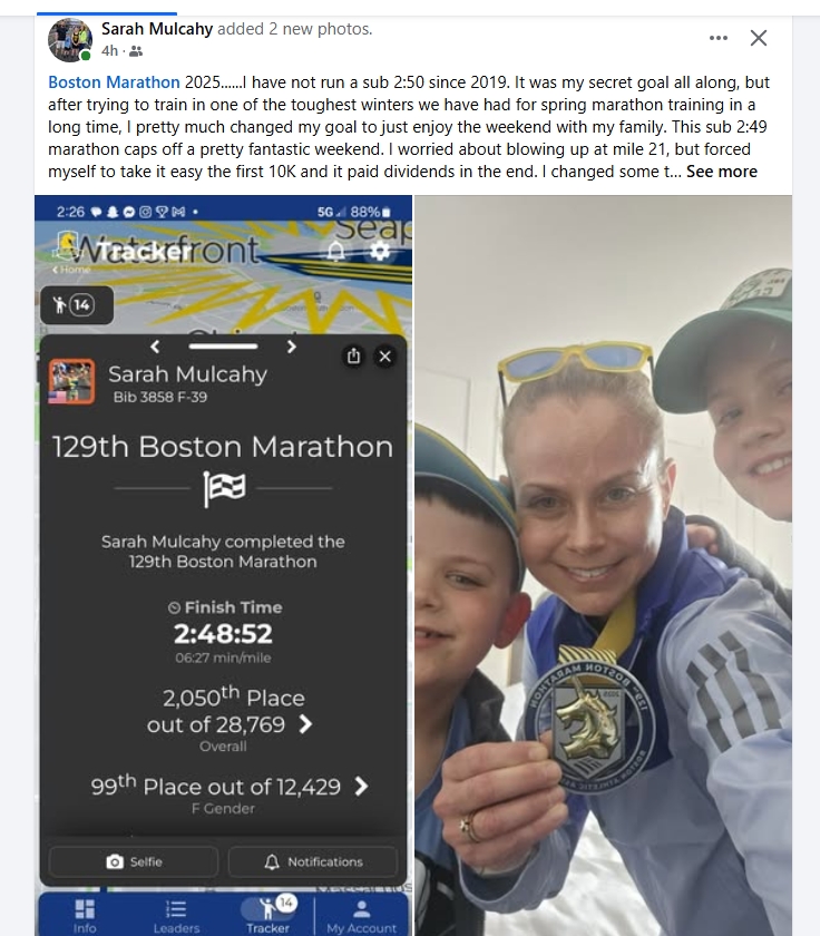 The 39-year-old got out to a solid start on the course with a pace of 2:23 minutes per mile by the 5K mark, according to the Boston Athletic Association’s athlete tracker. He reached the halfway point with a time of 37:57 and finished the race with an average pace of 3:06 minutes per mile.