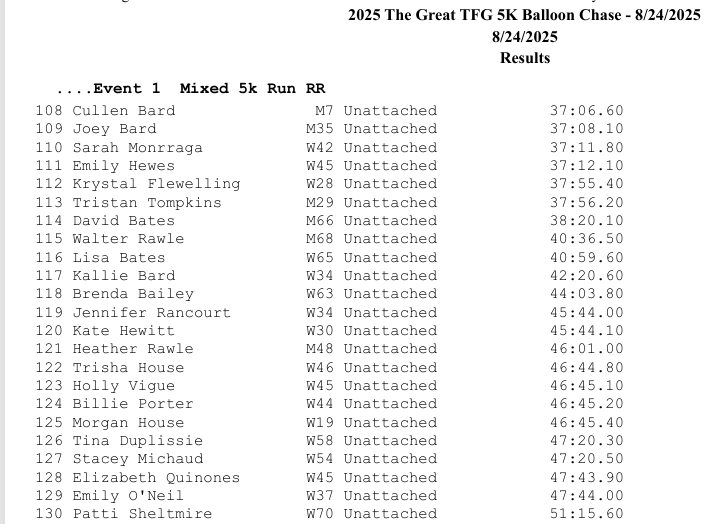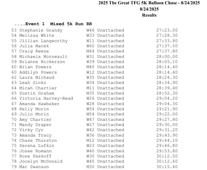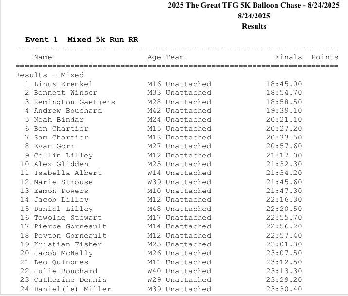 The Great TFG 5km Balloon Chase Results