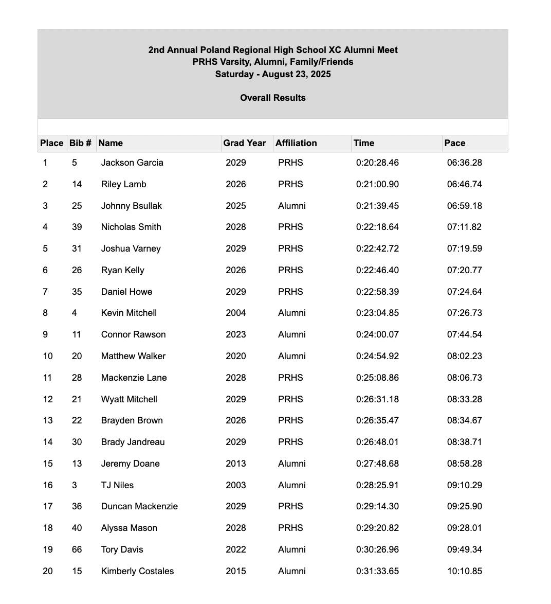 2025 Poland Regional High School’s 2nd Annual Alumni Race